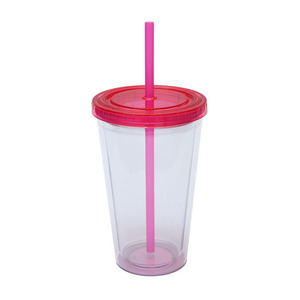 国境を越えたメーカーは二重のプラスチックストローカップを提供しています。蓋付き16オンスは色を決めてロゴカップを作ることができます