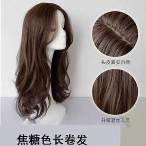 前のレースのかつらの女性の中で大きい波の長い巻きの女性の全身のカバー式の全体のトップのシミュレーションの髪の八の字の前髪のかつらのカバー