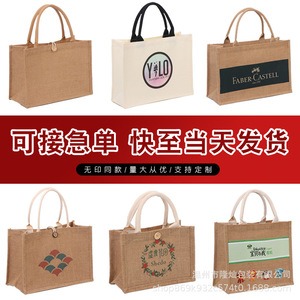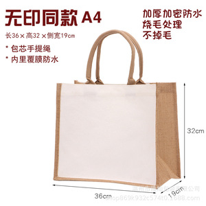 スポットブランクポータブルリネンバッグ卸売無印良品リネン収納ジュート DIY パターンショッピングバッグ