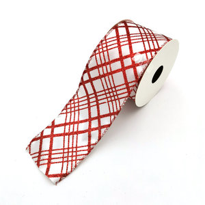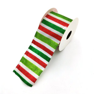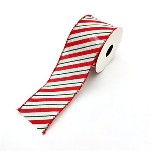現物2.5インチ紅白の縞模様に玉ねぎをまいて金のプリントをしてクリスマスのリボンをコピーしたキャンディーのプリントリボン