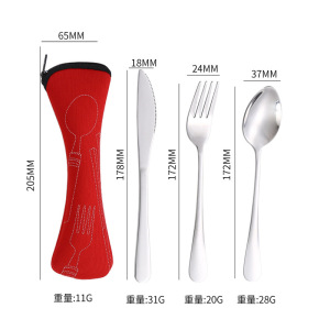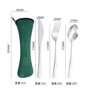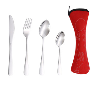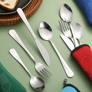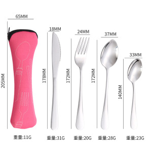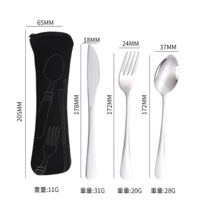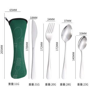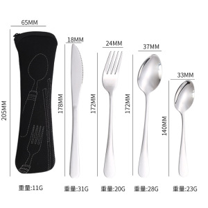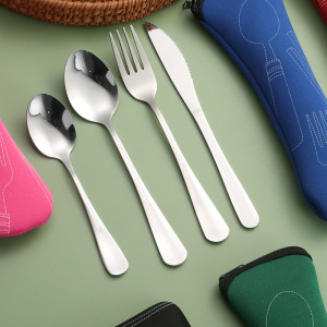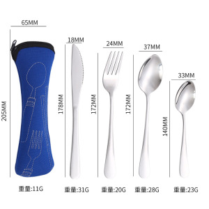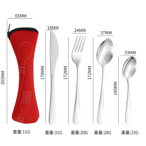 国境を越えた携帯ステンレス食器の四つの主要なナイフフォークスプーン屋外野食ナイフスプーンフォーク布袋セット