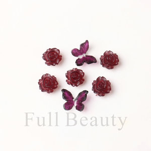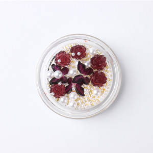 新商品のネイルアクセサリーは日本の平瓶の赤いツバキの花の蝶の真珠の鋼の玉を混ぜて爪のアクセサリーのnailを詰めます。