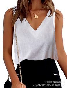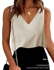 2023欧米の国境を越えた女性の綿麻のカジュアルなキャミソールの袖なしの女性のシャツの夏の基本的なベストの裏地