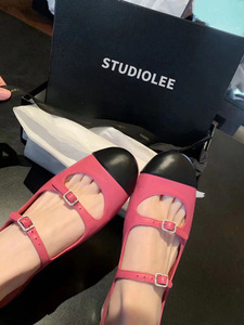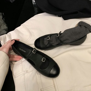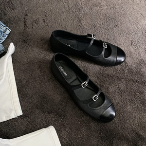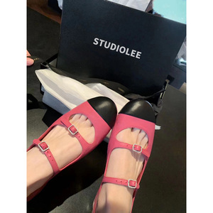 シープスキンバージョン〜グレープママと同じスタイルのラウンドトゥカラーブロックダブルワンストラップ浅口バレエメリージェーンシューズレディーススクープシューズ