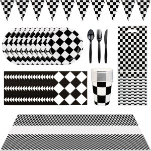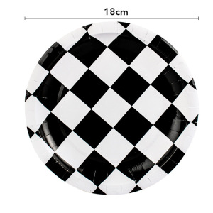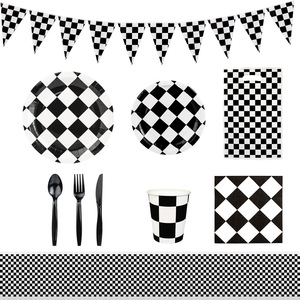 アマゾン白黒格誕生日パーティーセット紙皿ティッシュ紙コップ誕生日パーティー装飾レーシングモザイク