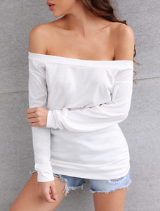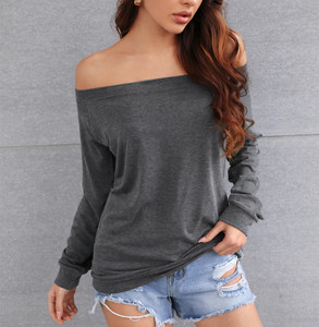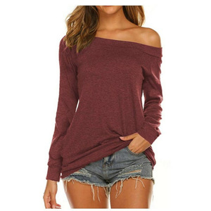 2023アマゾンwishクロスボーダー春夏欧米女性式長袖ファッション一字襟露肩純色上着tシャツ
