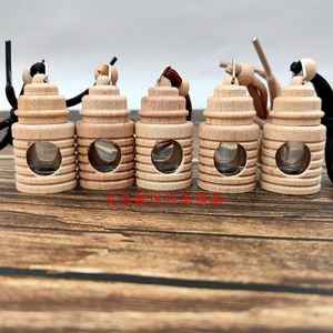 5mlの樽型の塔型の自動車の香水瓶のペンダントのケヤキの透かし彫りの2セットの木のセットの空の瓶の車の上で飾ります。