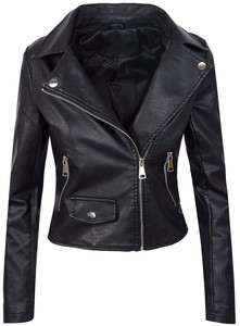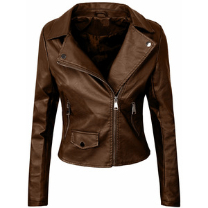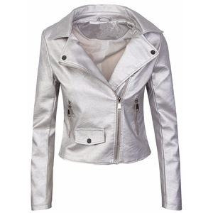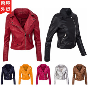 外国貿易欧米ヨーロッパコード秋冬コート修身ショートファスナーpu皮ジャケット女性純色皮服卸売り