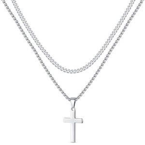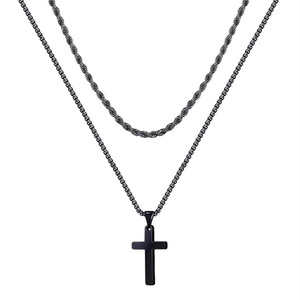 クロスボーダーホットスタイルステンレス鋼ツイストチェーンスネークボーンチェーンキューバチェーン二層クロスペンダントジュエリーチタン鋼ネックレス男性用