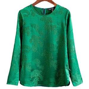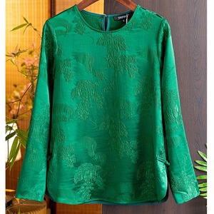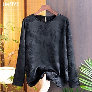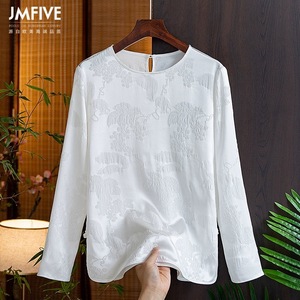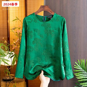 新中国式ジャカードシルク長袖シャツ女2024春新商品気質レトロ丸襟刺繍ゆるい上着