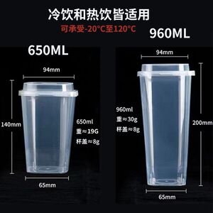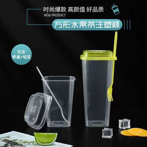 使い捨てミルクティー透明厚型射出成形正方形フルーツカップ大容量特大四角フルーツジュース厚型家庭用