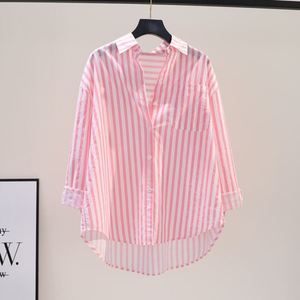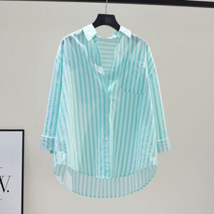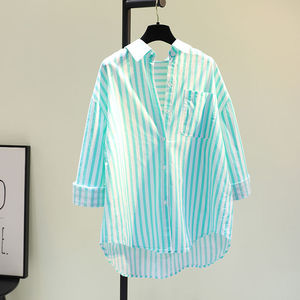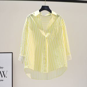 黄色のストライプの綿麻の小さい清新な百合ワイシャツの女性の薄いタイプのショールのカーディガンの外は上着の底のシャツを掛けます。