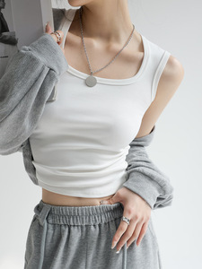ホワイトコットンベストスーツ、ボトムノースリーブサスペンダー付き、女性用春、夏、秋のアウターウェアホットガールプラスサイズトップ