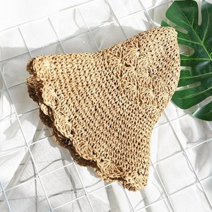 折り畳み可能な草編み帽子レディース春夏通気性サンシェード屋外旅行日焼け止め帽子ビーチ紫外線防止