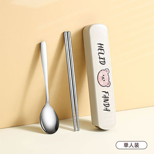 熊引き出し式携帯食器セット食品級ステンレススプーン箸収納ケース学生食器一人服