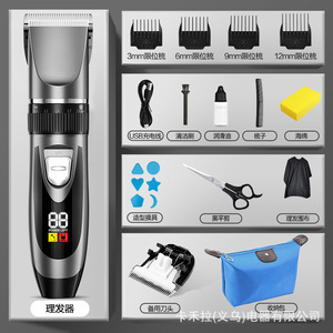 セラミックカッターヘッド-デジタルディスプレイグレー-パッケージ1 [収納袋+スポンジ+コームモデル+布+フラットシザー]