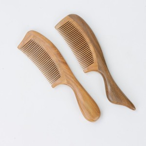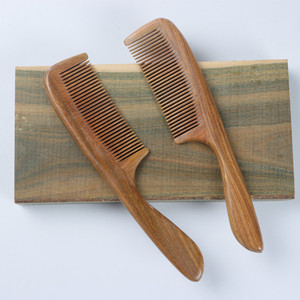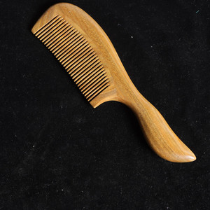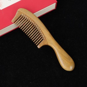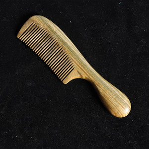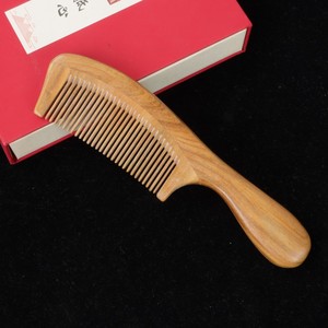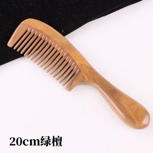天然の緑檀の大きいサイズの取っ手の木の櫛の丸い取っ手の細い歯は厚い緑檀の彫刻の字の木の櫛の家庭用