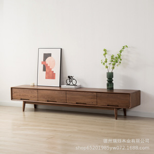 北欧黒胡桃木テレビキャビネット現代シンプル客間引き出しキャビネット小戸型日本式実木床キャビネット引き出し付き