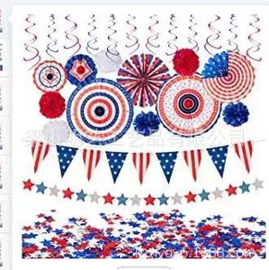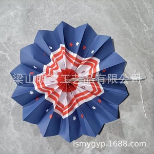 メーカー現物アメリカ国旗独立日紙扇アメリカ国慶節装飾赤青白紙扇花