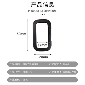 メーカー卸売 No.5 スクエアアルミニウム合金カラビナフラット電気泳動キーホルダー diy ハードウェアマットブラックバックルクロスボーダー
