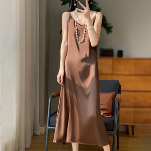 Karfely/日本サテンワンピースvネック酢酸サスペンダースカート酢酸ワンピースエレガント