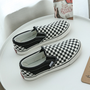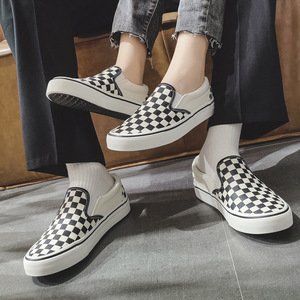 レトロな足の米盤の格子のキャンバスの靴の男性の春秋の新型の1足はカップルのスケートボードの靴の学生の板の靴の男性を漕ぎます。