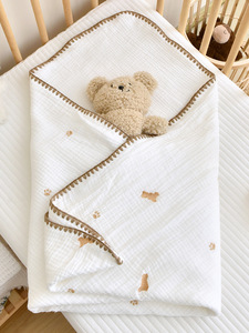 ベビータオル新生児純綿ガーゼ刺繍貝殻縁包単初産赤ちゃん出産室子守帯包単