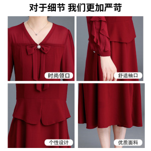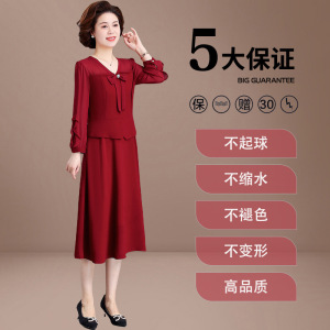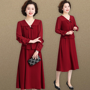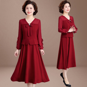 義母の結婚式の宴会ドレス、若い中年女性の春のドレス、中高年の母親の偽のツーピースドレス