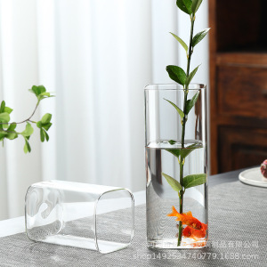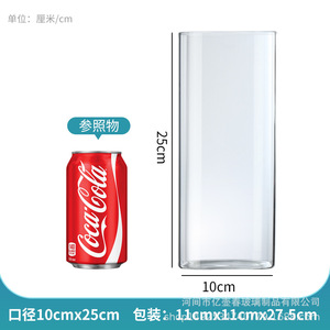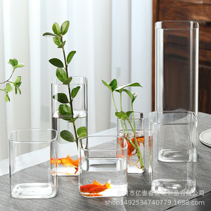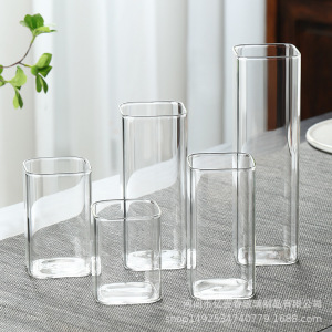 シンプルな正方形の高ホウケイ酸ガラス花瓶のまっすぐな筒の置物の水培の植物の瓶の花の客間の食卓の生け花の装飾