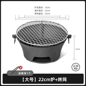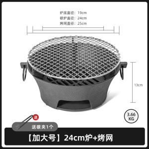26cm単炉炭素フレーム炭クリップ焼き網木ベース