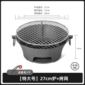 28cm単炉炭素フレーム炭クリップ焼き網木ベース