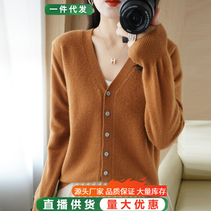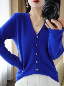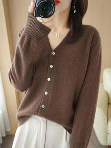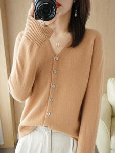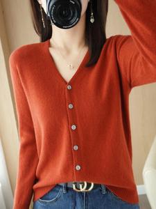 ウール混紡春秋気質メリヤスカーディガンvネックセーター純色の短い香り風コートの薄い女性の外着