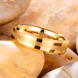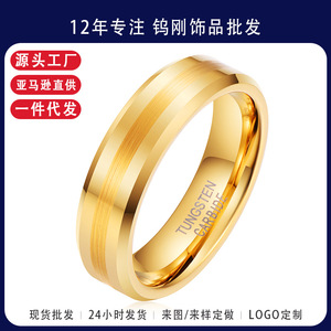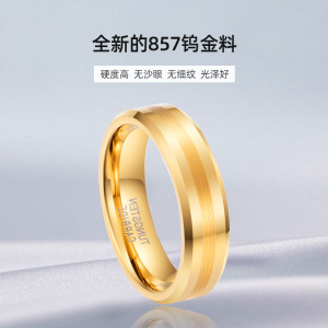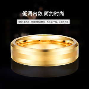 颯雅男性指輪タングステン金メッキ個性潮男タングステン鋼カップル烏金指環高級感戒子黄金色
