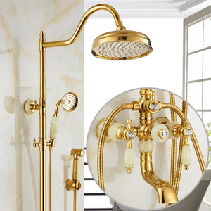 ヨーロッパ式のシャワーの花のセットの金色の青い玉の大理石の花の撒きは古い蛇口の全銅の混水弁の復古に似せます。