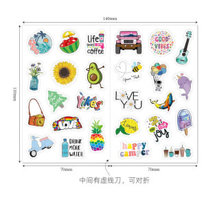 新しいビーチステッカー104枚の小さいサイズの防水漫画屋外の小さい清新なギターのスーツケースのビーチステッカー