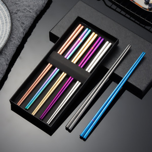 304ステンレス箸全方金色箸ホテル箸家庭用滑り止め箸ギフトボックス箸セット