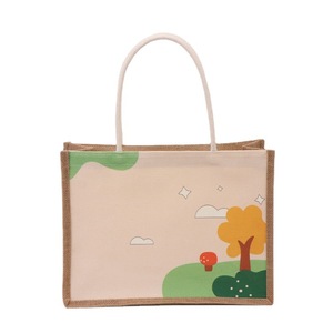メーカースポット卸売り黄麻手提げ袋化粧品レジ袋ファッション麻布バッグ亜麻布袋印刷可能log