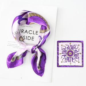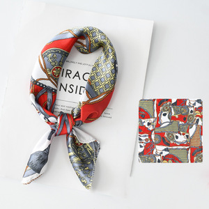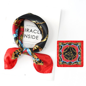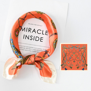クロスボーダーのファッション高級感のあるシルクのスカーフのチェーンの雑花の色の丁のシミュレーションの糸の50x50の小さいスカーフの女性の卸売り