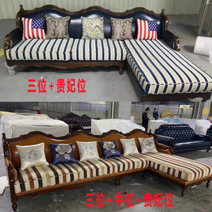 アメリカのコーナーの革の布のソファーの大きさの戸型の客間の全実木の頭層の牛革の簡美な真皮のソファーの貴妃の席
