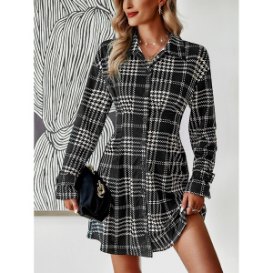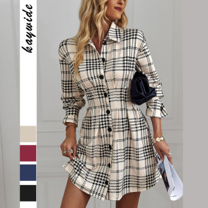 カイクオ 欧米越境ヨーロッパ独立系サイト チェック柄シャツワンピース 2023春秋 エレガントで万能なワンピース