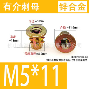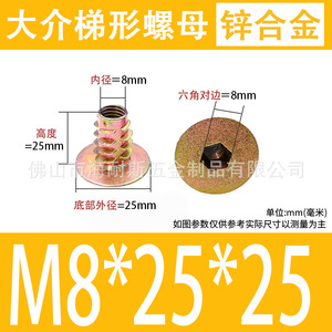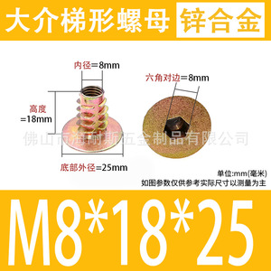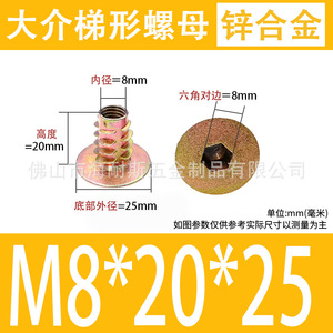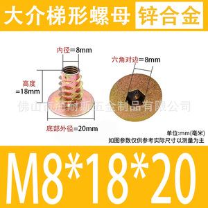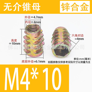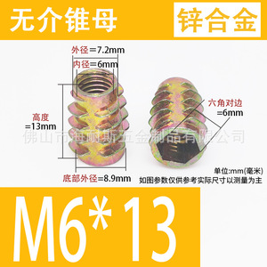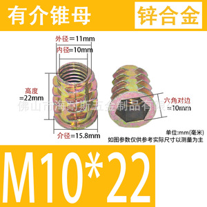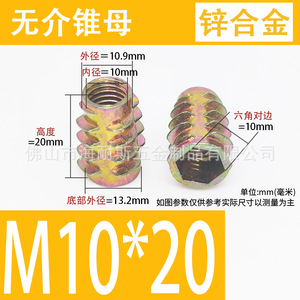 亜鉛合金内外歯ナット介合金テーパー付埋込ナット無介刺形ナット大介家具ナット