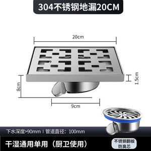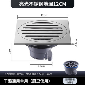 ステンレス鋼床排水管防臭床排水管 4 インチ 12X12 キッチン洗濯機浴室側列大排気量防虫床排水管
