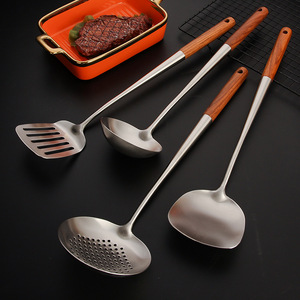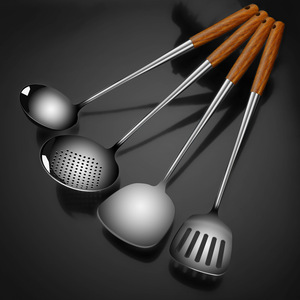 316lステンレスの厚いハンドルの黄花梨の木の鍋のシャベルのスプーンのスープのスプーンの台所の家庭用シャベルの4セット