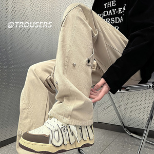 アメリカの高街の木こり工はズボンの男性のごろつきのハンサムなブランドのまっすぐな筒のゆったりしている大きいサイズの耐摩耗性の運動のレジャーのズボンを詰めます。