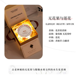 ギフトボックスのピンクカップ (暖かい白いライトバンド)-イチジクと蓮 (ワックスの重さ140g)