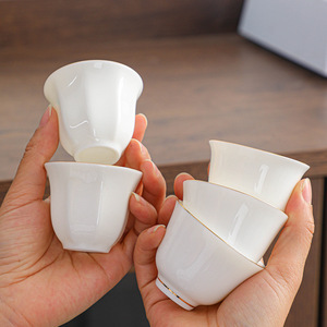 徳化セラミックティーセット、羊脂玉カンフーティーカップ、ティーカップ、ティーカップ、家庭用三才蓋付きティーカップ、ロゴ入り
