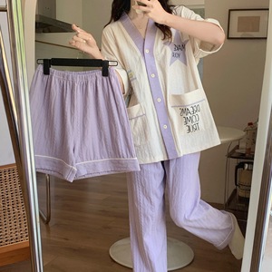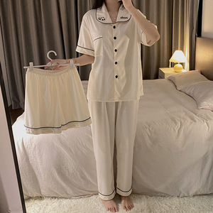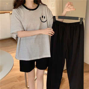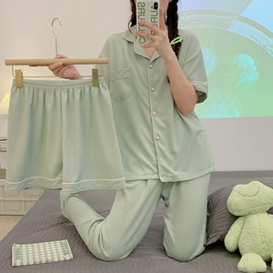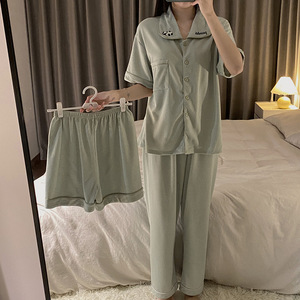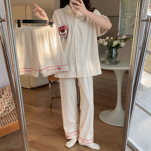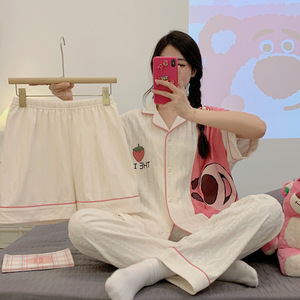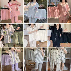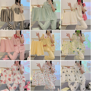 パジャマ女性夏綿質半袖三点セットかわいいアニメ薄手女子学生夏生放送ホームウェア卸売り
