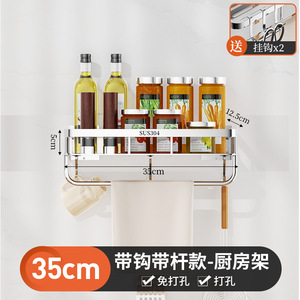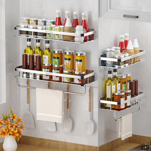 キッチンラック穴なし304ステンレス壁掛け家庭用コーナー調味料ラック取り外し可能収納ラック