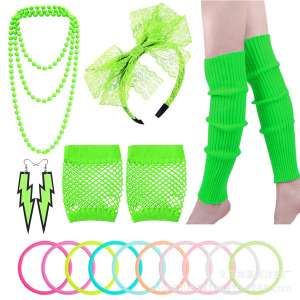 クリスマスパーティーセットネオンパーティーセット蛍光緑連線珠ネックレスレースカチューシャイヤリング脚セット