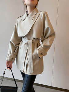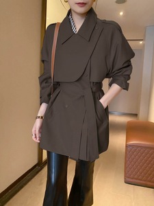 現物の春の新型のレトロなマントのコートの女性のデザイン感の中の長いサイズの小さい背のコート